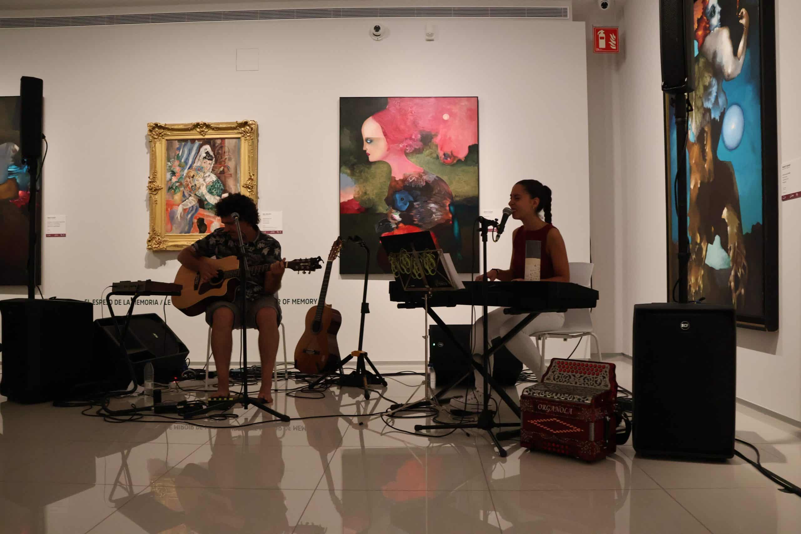 No és la primera vegada que el Museu Carmen Thyssen experimenta la combinació d’arts, posant en diàleg la música i la pintura. De fet, les darreres exposicions del centre s’han caracteritzat per incorporar una BSO pròpia que el públic pot escoltar mentre contempla les obres. Ara bé, tenir l’oportunitat de gaudir de música en directe dins el museu no és tan habitual i, aquest divendres, el públic que s’ha apropat a la sala ha pogut viure una experiència única: el diàleg en viu entre les obres de la nova exposició ‘Vincles’ i la proposta musical del duet format per Eugènia Correia i Lluís Cartes.
