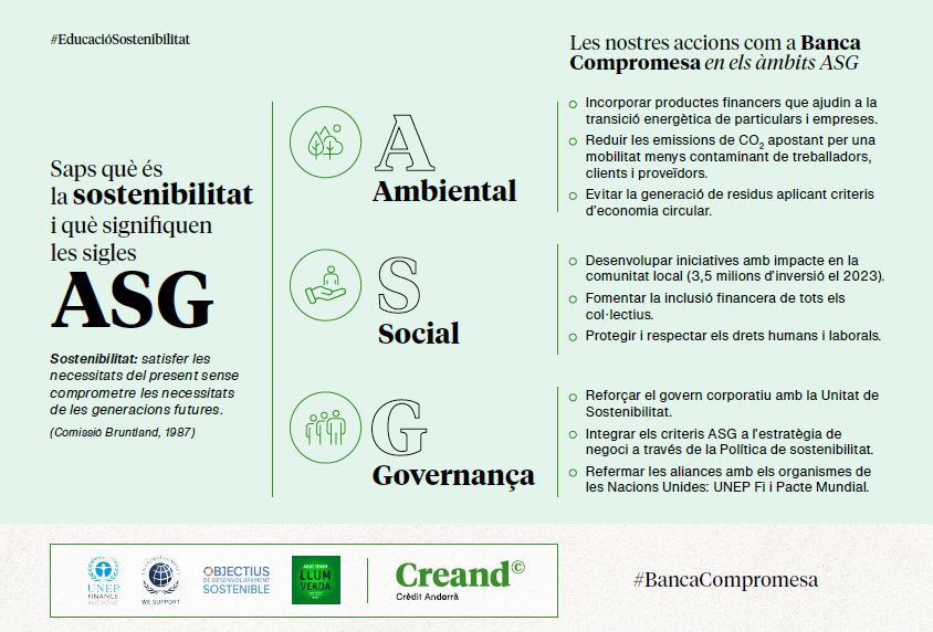 T’expliquem tot seguit com des de Creand Crèdit Andorrà estem aplicant els criteris ASG en la nostra activitat per avançar en el model de banca compromesa. 👇